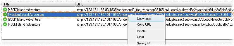 Getflv はビデオのアドレスを自動的に検査して「URLのリスト」に挿し込みます。「URLのリスト」から適応なURLを選択して、 [ダウンロード]をクリックしてダウンロードタスクを作成してください。