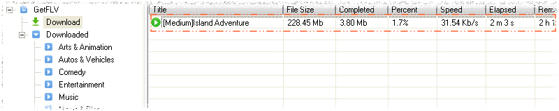 Getflv に付属されているプレイヤーを使って、ダウンロードされているビデオにプレビューができます。
